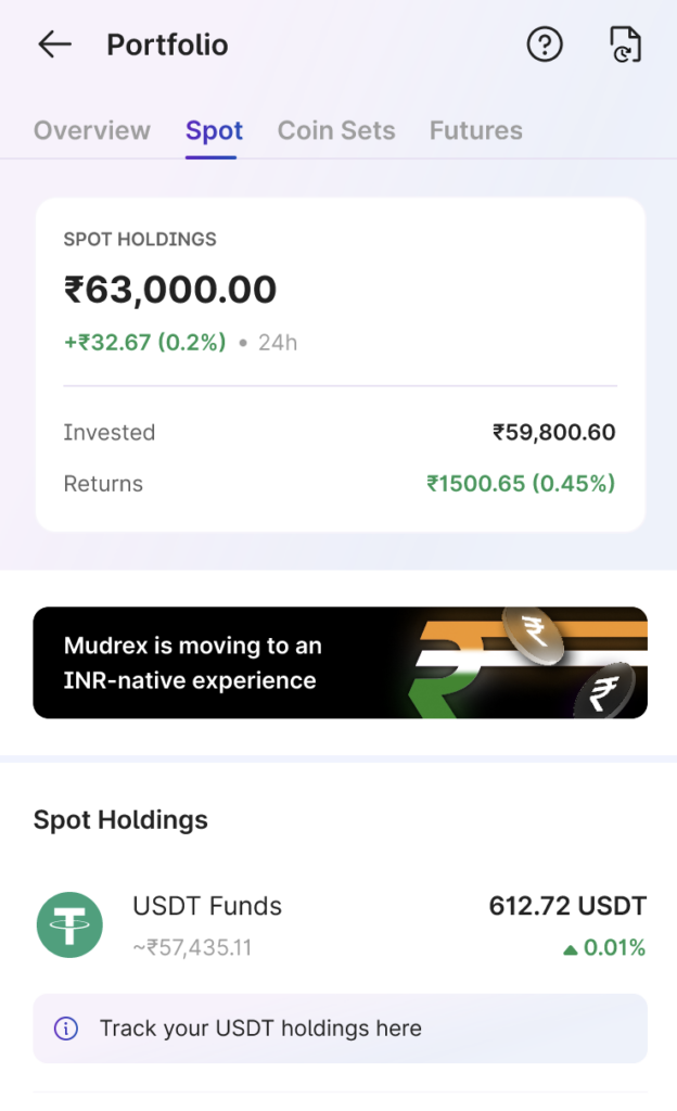 Launch the Mudrex app and tap “Spot Holdings” on the home screen.