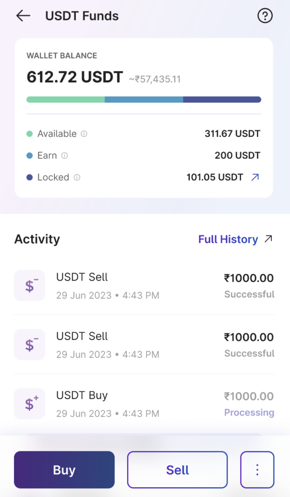 Please note: To buy USDT, you must have sufficient INR Funds in your account. If your INR balance is low, add funds first before proceeding.