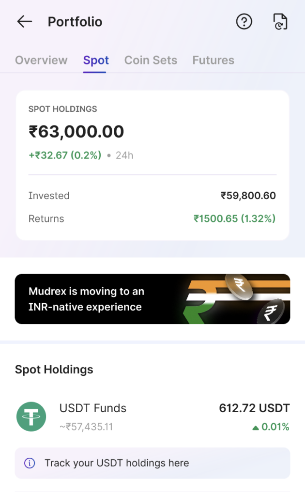 On the home screen, tap “Spot Holdings” from the quick actions. You can also access it through the Overview tab under Portfolio.